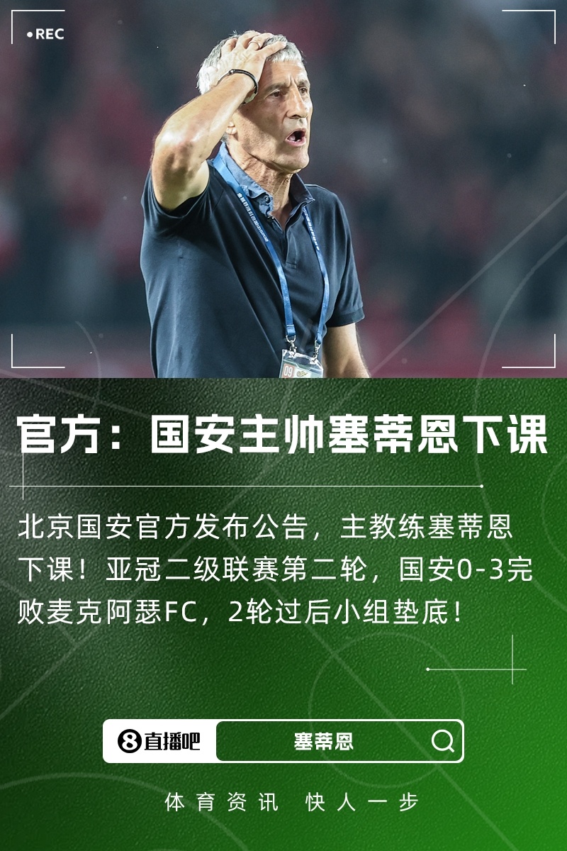 10月05日讯 北京国安官方消息,塞蒂恩不再担任球队主帅。关于基克·塞蒂恩先生离任的公告基克·塞蒂恩先生由于个人及家庭原因,经慎重考虑...